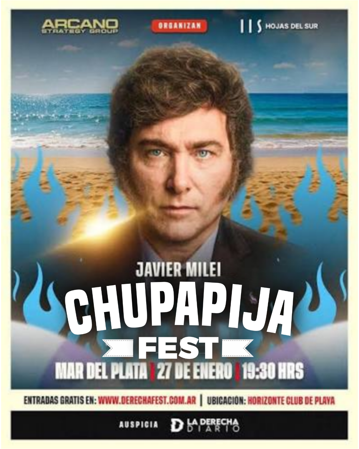 El Chupapija Fest aterriza en Mar del Plata como esos cruceros que bajan turistas con la ilusión de “descubrir” una ciudad que ya existe sin ellos. Se presenta como un Woodstock de la libertad pero huele más a feria de souvenirs ideológicos: stands de indignación prefabricada, paneles donde se reciclan las mismas frases de manual y un público que aplaude como si estuviera comprando dos por uno en certezas. Todo envuelto en esa estética de rebeldía enlatada y psicótica que intenta venderse como contracultura mientras repite, sin pestañear, el mismo guion que critica. Y si hablamos de chupapijas… ¿Quién va a ser el orador principal? Milei, chupapijas oficial de Donald Trump. ¿Acaso hay algo superior en materia de chupar pijas?